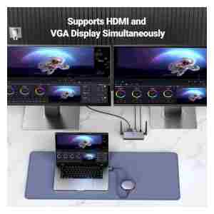 Opremljen je z VGA in HDMI izhodom za dvojni prikaz, ki omogoča hkraten ali ločen izhod video signala. Hkrati vključuje 3,5-mm avdio priključek za priklop zunanjih avdio naprav. - Vsebina paketa