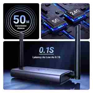 UGREEN brezžični HDMI oddajnik zagotavlja stabilno povezavo, ki je ključna za nemoteno pretakanje. Z dosegom do 50 m omogoča svobodno gibanje brez izgube signala. Nizka zakasnitev in visokokakovosten signal zagotavljata gladko izkušnjo gledanja, ne glede na to, ali igrate videoigre ali gledate videoposnetke. Zaradi zanesljivega delovanja je primeren tako za domačo zabavo kot tudi za profesionalna okolja.