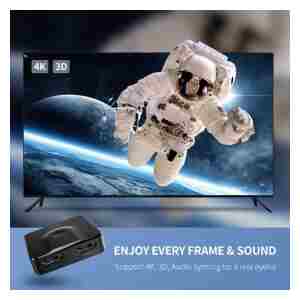 Ugreen 2×1 HDMI stikalo vam omogoča hitro in preprosto povezavo 2 izvornih naprav na vašo napravo za prikaz HDMI. Če na vašem televizorju ni dovolj priključkov HDMI, bo to stikalo ponudilo idealno rešitev za to. Omogoča priročno preklapljanje med digitalnimi napravami, kot so PC, DVD predvajalniki, satelitski sprejemniki in digitalne kamere. Želeni vhodni vir lahko izberete z daljinskim upravljalnikom ali gumbom na stikalu. Prav tako podpira 4Kx2K ločljivost in 3D.