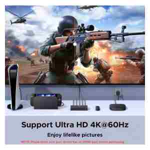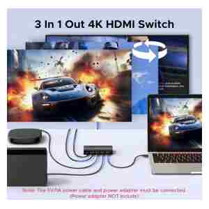 HDMI stikalo UGREEN omogoča enostavno pretakanje videa iz 3 HDMI virov na 1 HDMI zaslon. (OPOMBA: Hkrati deluje SAMO en monitor!) Ta HDMI večvratni adapter vas osvobodi priklapljanja in odklapljanja HDMI kablov ter zaščiti vmesnik in žico, tako da lahko preprosto uživate v delu ali igranju iger med 3 napravami.