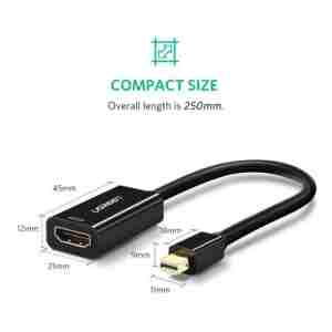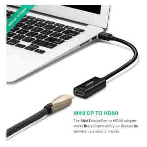 Adapter UGREEN mini DisplayPort na HDMI omogoča povezavo računalnikov z mini DisplayPort na veliko večji zaslon, HDTV ali projektor s priključkom HDMI. To vas razbremeni omejene velikosti zaslona od prenosnega računalnika do večjega prikaza pri gledanju filmov ali igranju iger.