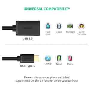 UGREEN USB Type-C do USB 3.0 Tip sinhronizacijski kabel vam omogoča priključitev pogona za bliskavico, tipkovnice, miške, pogonov peresa, krmilnika iger, brezžičnih mišk ali celo čitalnika kartic SD TF na USB C mobilne naprave. Podpira Android USB telefone ali tablične računalnike tipa C, ki delujejo kot gostiteljski računalnik in dodajo standardna USB ženska vrata za prenosni računalnik USB C.