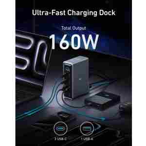 Zagotovite močno polnjenje s skupno izhodno močjo 160 W, ki omogoča hkratno polnjenje do štirih naprav – prek treh vrat USB-C (največ 100 W vsaka) in enega vrata USB-A (največ 12 W).
