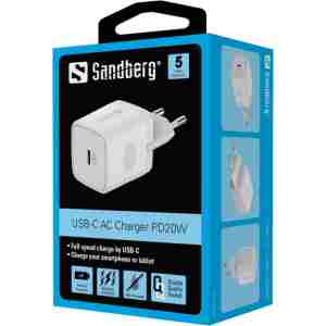 Polnilnik Sandberg USB-C AC Charger PD20W je priročni polnilnik za električno vtičnico. Ima izhod USB-C 20W PD za polnjenje pametnih telefonov in tabličnih računalnikov pri polni hitrosti.
