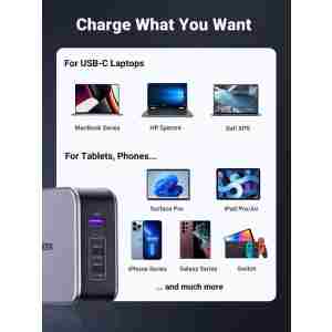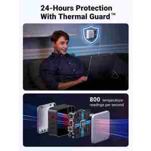 140 W USB C polnilec s tehnologijo Ugreen Thermal Guard Tech in Power Dispenser System zagotavlja varno in brezskrbno izkušnjo polnjenja. Thermal Guard meri temperaturo v realnem času 800-krat na sekundo, da zaščiti vaše naprave pred pregrevanjem; Sistem Power Dispenser inteligentno prilagodi izhodno moč, da zaščiti baterijo vaše naprave in tako dlje zdrži.