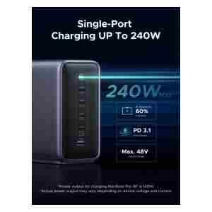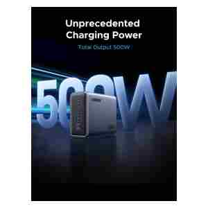 UGREEN 55550 je napreden namizni GaN polnilec s skupno izhodno močjo do 500 W, opremljen s 6 vrati (5 × USB-C in 1 × USB-A). Idealen za polnjenje več naprav hkrati – prenosnikov, tablic, telefonov in druge periferije.