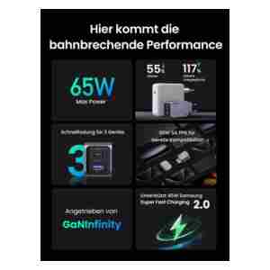 Polnilec s 65 W podpira Samsung Super Fast Charging 2.0 45 W in je združljiv s serijami MacBook, iPhone, Galaxy, Pixel, XPS, AirPods, Apple Watch, Steam Deck, Switch itd.