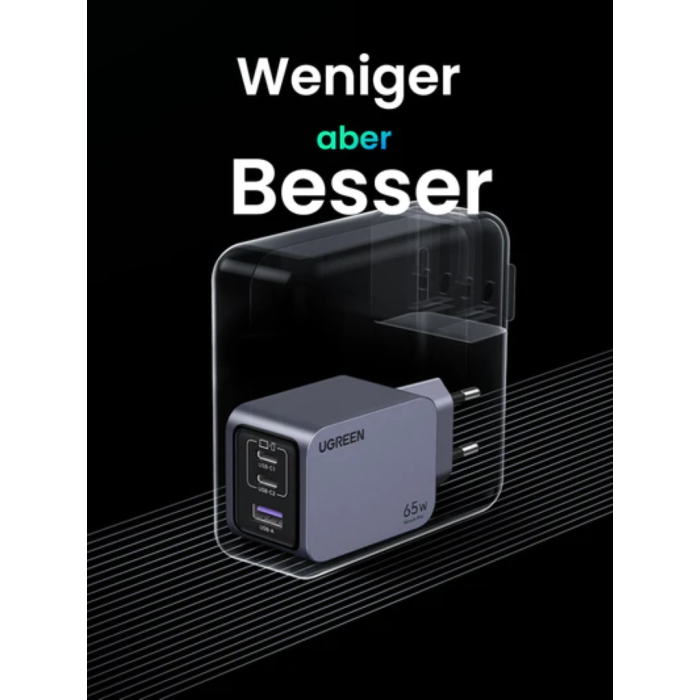 Manjša velikost, večja gostota energije. Ta polnilnik UGREEN USB C z visoko močjo 65 W je 55 % manjši od originalnega polnilnika 67 W, medtem ko se gostota energije poveča za 117 %. Tako bo bolj kompakten in prostorsko varčen, idealen za potovanja in lahko izjemno hitro napolni vaše naprave.
