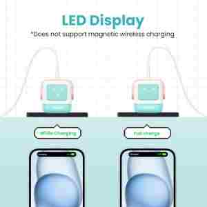 obraz robota je LED zaslon, ki prikazuje različne izraze za stanja polnjenja.