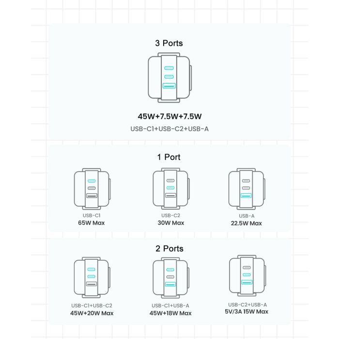 z 2 vhodoma USB C in 1 vhodom USB A je naš polnilnik združljiv z različnimi napravami.