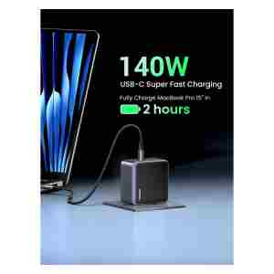 UGREEN 45575 je zmogljiv 140 W GaN polnilnik s štirimi izhodi, zasnovan za profesionalno uporabo in sodobna delovna okolja. Omogoča hkratno polnjenje prenosnikov, tablic in drugih USB-naprav z visoko skupno izhodno močjo ter učinkovito razporeditvijo energije med priključki. Zaradi GaN tehnologije polnilnik ohranja kompaktno obliko, visoko učinkovitost in stabilno delovanje tudi pri večjih obremenitvah.