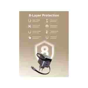 Polnilec ima tri različne priključke, ki omogočajo sočasno polnjenje do treh naprav, kar je priročno, ko je treba napajati več naprav hkrati. Tehnologija GaNInfinity™ zagotavlja 95 % učinkovitost in kompakten dizajn, ki je enostaven za prenašanje na poti. Polnilec vključuje osem plasti zaščite pred previsokim tokom, prenapetostjo, pregrevanjem in drugimi tveganji, medtem ko Thermal Guard™ spremlja temperaturo 200-krat na sekundo, da zagotovi stabilno in varno polnjenje.