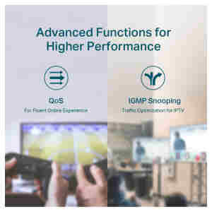 - QoS 802.1p / DSCP omogoča nemoten promet, občutljiv na latenco