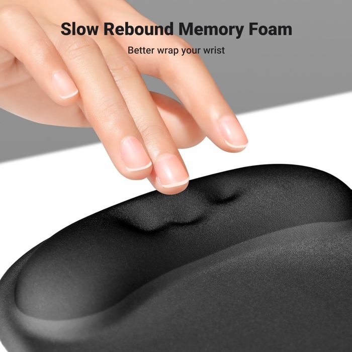Zapestni del podloge za miško je izdelan iz spominske pene, ki ima počasen odboj in je zelo prijazna do uporabnika, ki uporabljajo miško dlje časa.