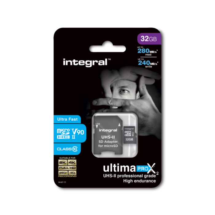 Integral UltimaPro X2 microSDXC so profesionalne spominske kartice z UHS-II vmesnikom, ki ustrezajo potrebam najnovejših akcijskih kamer, brezpilotnih letal, profesionalnih kamer, pametnih telefonov in tablic.