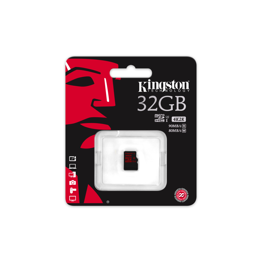 Kingston Technology microSDHC/SDXC UHS-I U3 32GB. Kapaciteta: 32 GB, Tip Flash kartice: MicroSDXC, Razred Flash pomnilnika: Razred 3, Vrsta notranjega pomnilnika: UHS, Hitrost branja: 90 MB/s, Hitrost zapisovanja: 80 MB/s. Barva izdelka: Črna