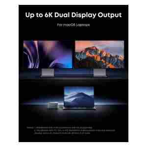 Podpira en HDMI ali DisplayPort in dva Thunderbolt 5 izhodna video priključka. Omogoča prikaz do 8K@60Hz za en sam zaslon ali dvojni 8K@60Hz prikaz za prenosnike s Thunderbolt 5 in operacijskim sistemom Windows.