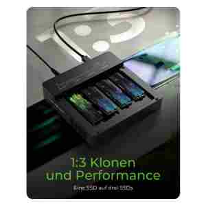 IB-4013MCL-C4 je klonirna postaja, zasnovana za hiter dostop in kloniranje do štirih M.2 NVMe SSD-jev. Podpira 1:3 offline kloniranje, visoke hitrosti prenosa do 40 Gbit/s in delovanje vsakega SSD-ja do 16 Gbit/s. Ohišje iz aluminija ter aktivno hlajenje z ventilatorjem omogočata učinkovito odvajanje toplote. Primeren je za diske velikosti 22×30/42/60/80 mm.
