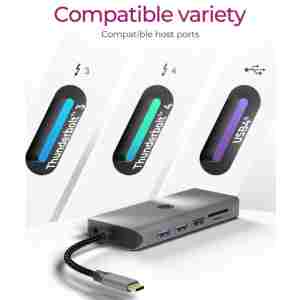 IB-DK4061-CPD je 12-v-1 mobilna priklopna postaja z dvema HDMI izhodoma, ki podpirata ločljivosti do 8K@30 Hz in 4K@30 Hz. USB-C povezava z DP Alt Mode omogoča široko združljivost ter hitro prenašanje podatkov do 10 Gbit/s. Ponuja Gigabit LAN, bralnika SD/microSD, več USB priključkov ter 100-W Power Delivery. Kompaktna zasnova in 15-cm integriran kabel omogočata enostavno uporabo doma ali na poti.