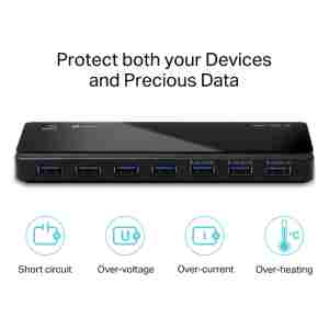 TP-Link UH700 V5 je 7-portni USB 3.0 hub, zasnovan za razširitev USB priključkov in hitro povezovanje zunanjih naprav. USB 3.0 omogoča prenose podatkov do 5 Gb/s, kar je idealno za povezavo zunanjih diskov, tiskalnikov, skenerjev, USB ključkov in drugih perifernih naprav. Hub podpira plug-and-play delovanje, brez potrebe po dodatnih gonilnikih, ter vključuje vgrajene zaščite pred prekomernim tokom, prenapetostjo in kratkim stikom za zanesljivo dolgoročno delovanje. Z združljivostjo z Windows, macOS in Linux sistemi je primeren za širok spekter delovnih okolij in uporabnikov. UH700 V5 ponuja stabilno razširitev priključkov v kompaktni, profesionalno oblikovani pretočni enoti.
