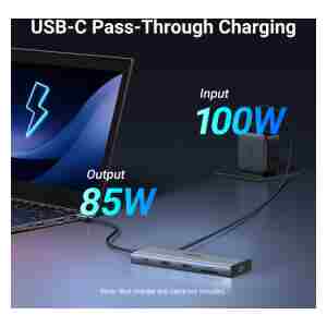 Med uporabo razširitvene postaje naj bodo vaše naprave napajane. Funkcija prehodnega polnjenja USB-C vam omogoča polnjenje prenosnega računalnika ali drugih naprav ob hkratni uporabi funkcij vozlišča. Podpira PD3.0 do 100W.