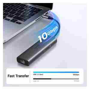 UGREEN 45000 je elegantna in zmogljiva 6-v-1 USB-C razširitvena postaja, ki vključuje HDMI 4K@60 Hz izhod, 2 × USB-A 3.2, 1 × USB-C 3.2, RJ-45 gigabitni Ethernet ter zunanji napajalni vhod PD do 100 W — idealna za prenosnike in delovne postaje.