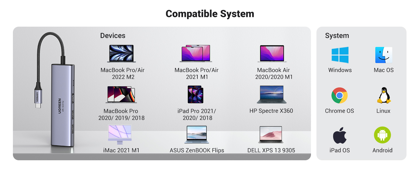 vozlišča UGREEN USB-C podpirajo video izhod 4K pri 60 Hz. Ta stopnja osveževanja zagotavlja nemoteno drsenje na podprtih monitorjih, skoraj vsako drugo vozlišče doseže največjo frekvenco 30 Hz, kar odpravlja veliko, dolgoletno pomanjkljivost te kategorije.