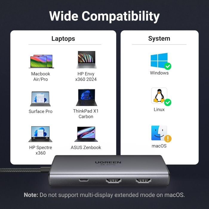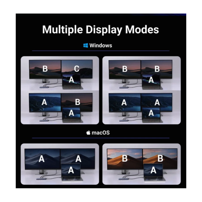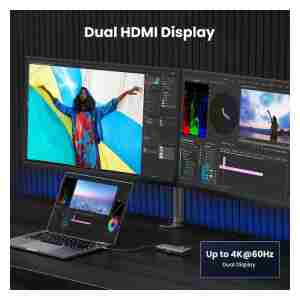 podpira dvojna zaslona HDMI z ločljivostjo do 4K@60Hz, kar je idealno za učinkovito večopravilnost med zasloni in izboljšanje ustvarjalnih delovnih tokov.