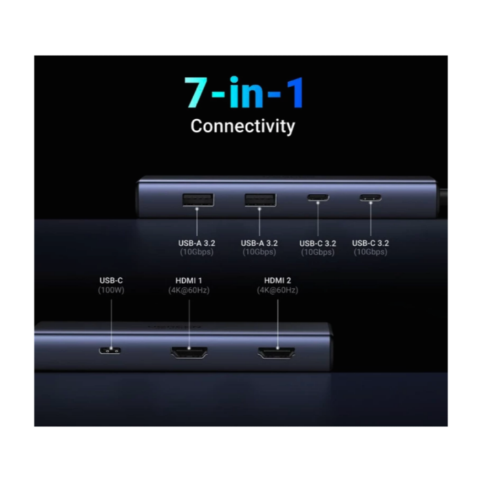 vsebuje dve vrati HDMI, 100W vrata USB-C PD, 5Gbps podatkovna vrata USB-C in 2x USB-A, ki izpolnjujejo vse vaše potrebe po povezljivosti.