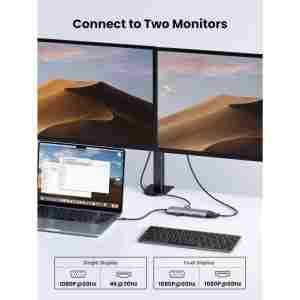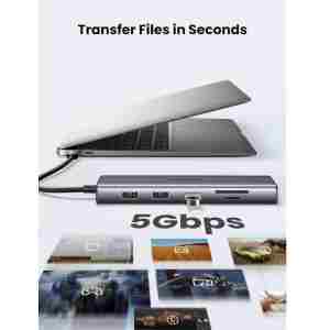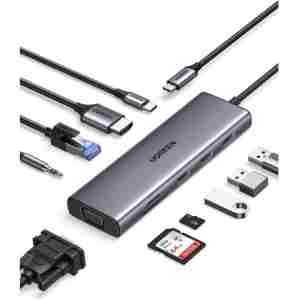 UGREEN 10-v-1 USB C priklopna postaja nudi 4K HDMI in 1080P VGA, vrata Ethernet 1Gbps, polnilna vrata USB-C 100 W PD, 3 vrata USB-A 3.0, 3,5 mm priključek za zvok in čitalnik kartic SD/TF. Vsa vrata adapterja z več vrati se lahko uporabljajo hkrati.