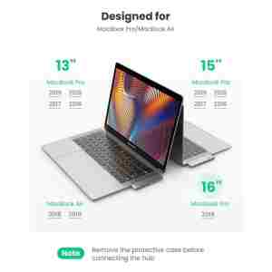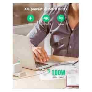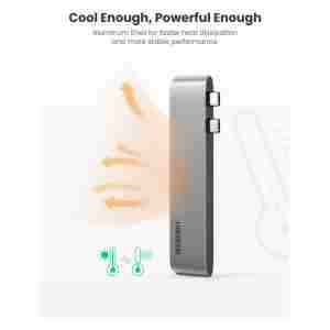 Ugreen Hub podpira PD Power USB z močjo 1000 W PD 2.0, ki omogoča hitro polnjenje prenosnega računalnika pri povezovanju z zidnim adapterjem PD. Hitro polnjenje je na voljo samo za prenosne računalnike. Za telefone podpira le običajno polnjenje.
