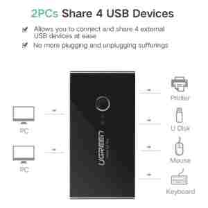 - Z Ugreen stikalom lahko delite do 4 USB naprave med 2 računalnikoma.