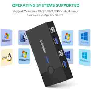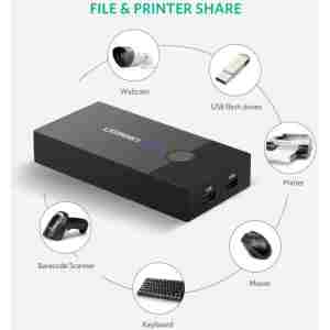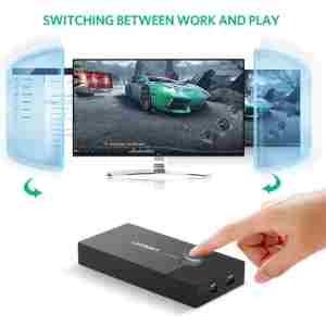 Ugreen 2-vratna USB KVM stikalna omarica vam omogoča nadzor 2 računalnikov z enim nizom krmilnikov (miška in tipkovnica).
