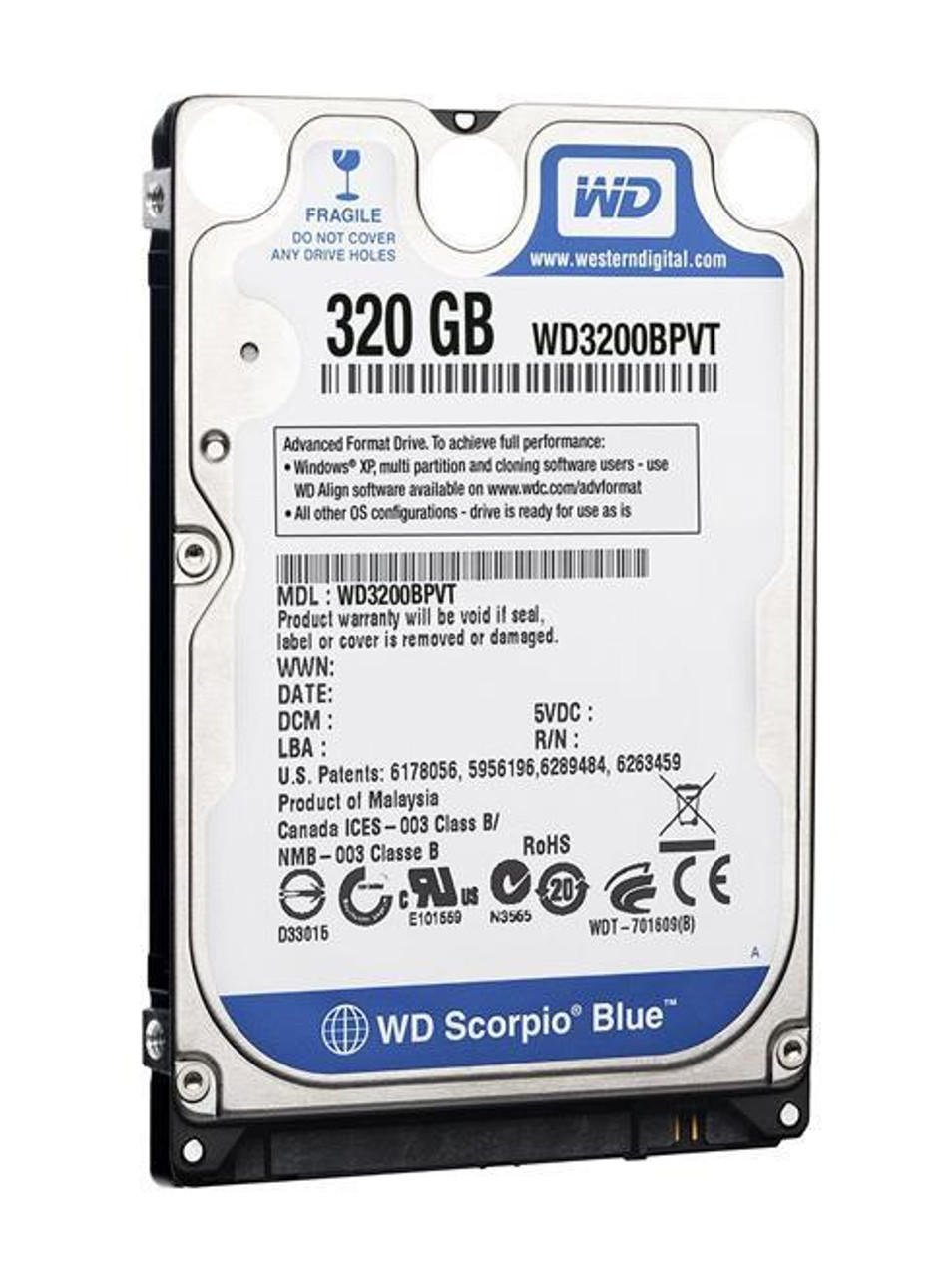 WD 2,5″ 320 GB model WD3200BPVT, 8MB, 5400 rpm.