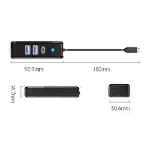 USB-C hub s 4-vhodi, USB 3.0, 0.15m, črn, ORICO PW4U-C3-015
