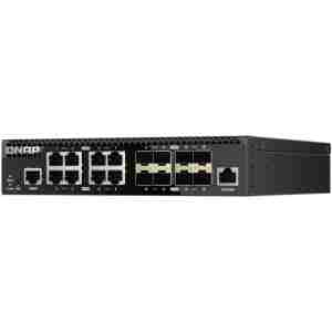 Več vrat 10GbE in več prihranka prostora po dostopni ceni. QNAP QSW-M3216R-8S8T je upravljano stikalo L2 polovične širine za namestitev v omaro z osmimi optičnimi vrati 10GbE SFP+ in osmimi vrati 10GbE RJ45. QSW-M3216R-8S8T s podporo za preklapljanje ravni 2 in upravljanje omrežja prek uporabniku prijaznega spletnega uporabniškega vmesnika ponuja prilagodljivo uvajanje v omrežnih okoljih visoke hitrosti in zagotavlja osnovno rešitev za upravljanje omrežja. Z zasnovo polovične širine lahko QSW-M3216R-8S8T priročno postavite v delovna okolja, ne da bi zavzeli preveč prostora, dva pa lahko namestite v eno samo omaro 1U. QSW-M3216R-8S8T je izdelan v Tajvanu (MIT) in zagotavlja visokokakovostno in zanesljivo omrežno rešitev.