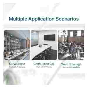 TP-LINK TL-SG116P je zanesljivo in učinkovito 16-portno gigabitno stikalo, zasnovano za domača, pisarniška in mala poslovna omrežja. Porti podpirajo PoE+ (802.3af/at), kar omogoča neposredno napajanje IP kamer, dostopnih točk, VoIP telefonov in drugih PoE naprav brez potrebe po dodatnih kablih ali napajalnikih. S skupnim PoE proračunom 120 W stikalo omogoča stabilno napajanje več naprav hkrati. Energetsko učinkovita tehnologija zmanjšuje porabo energije glede na obremenitev, kovinsko ohišje in fanless zasnova pa zagotavljata tiho delovanje in dolgoročno zanesljivost.