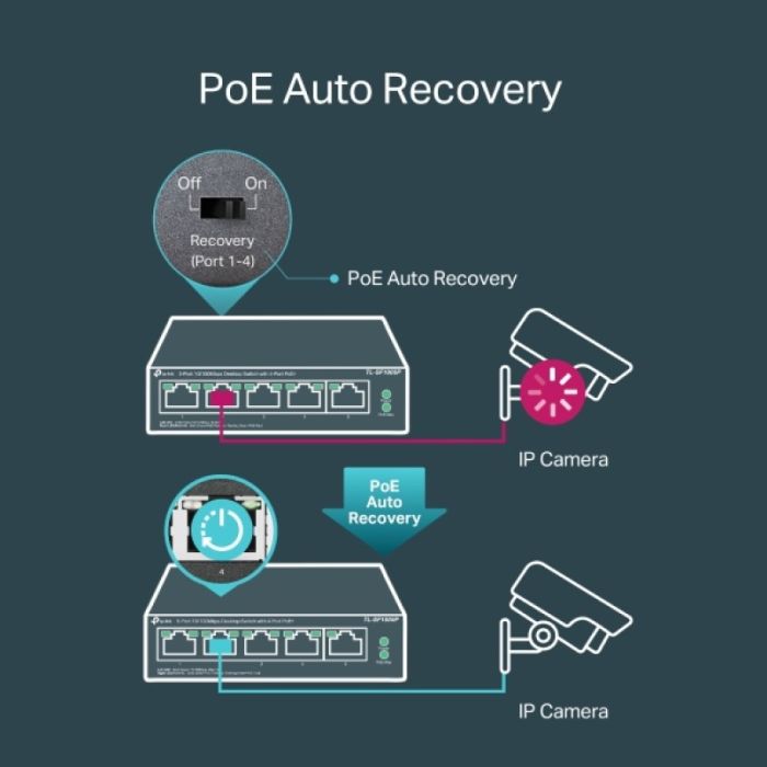 PoE Auto Recovery zagotavlja stabilno delovanje naprav PoE s samodejnim ponovnim zagonom izpadlih ali neodzivnih naprav PD