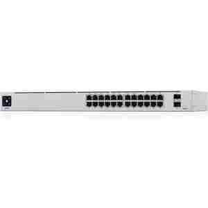 USW-24-POE je nastavljivo stikalo Gigabit Layer 2 s štiriindvajsetimi gigabitnimi Ethernet vrati, vključno s šestnajstimi samodejno zaznavnimi vrati 802.3at PoE + in dvema SFP priključkoma.