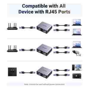 Ta ethernetni razdelilnik RJ45 lahko omrežje razdeli na dve omrežji in lahko hkrati omogoči, da hitrost prenosa dveh naprav doseže 1000Mbps, kar odlično reši vprašanja nezadostnega omrežnega ožičenja in nestabilnega prenosa signala .