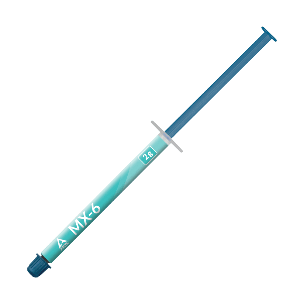 ARCTIC termalna pasta MX-6 je visoko cenjena v krogu računalniških entuziastov, saj zaradi svoje sestave omogoča ekstremno dobro termalno prevodnost, in je zato ena najboljših past na tržišču. Ker ne vsebuje kovinskih delcev ni električno prevodna, kar pomeni varno aplikacijo na vaš procesor.