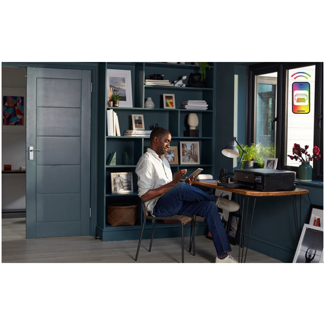 Pustite svoji ustvarjalnosti prosto pot in ustvarite osupljive fotografije in dokumente A3+ z neverjetno nizkimi stroški izpisa na stran. Preprosto tiskajte, kopirajte in optično prebirajte vsebine na napravi, opremljeni z 10,9-cm barvnim zaslonom na dotik, 5-smerno obdelavo medijev in inovativnim 6-barvnim sistemom črnil. Brez kartuš, ki bi jih bilo treba menjati, in s prilagodljivimi funkcijami povezljivosti je to popoln tiskalnik za sodobno in umetniško nadarjeno družino. Črnila Epson Claria ET Premium zagotavljajo visokokakovostne, trajne fotografije, ter izjemne črno-bele fotografije, ki jih omogoča novo sivo črnilo. Pigmentno črno črnilo je idealno za tiskanje ostrih besedil na običajen papir.