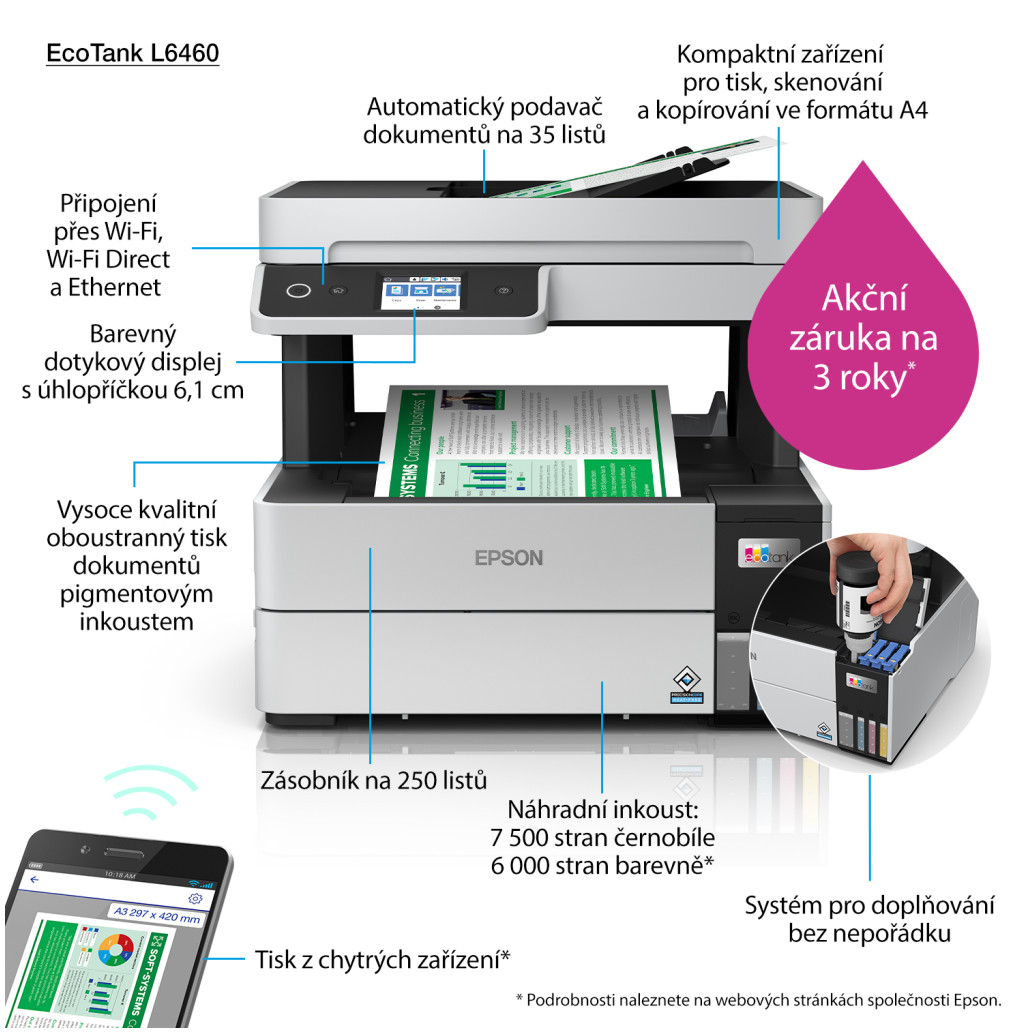 Specifikacije: https://www.epson.si/products/printers/inkjet-printers/for-home/ecotank-l6460?productfinder=L6460