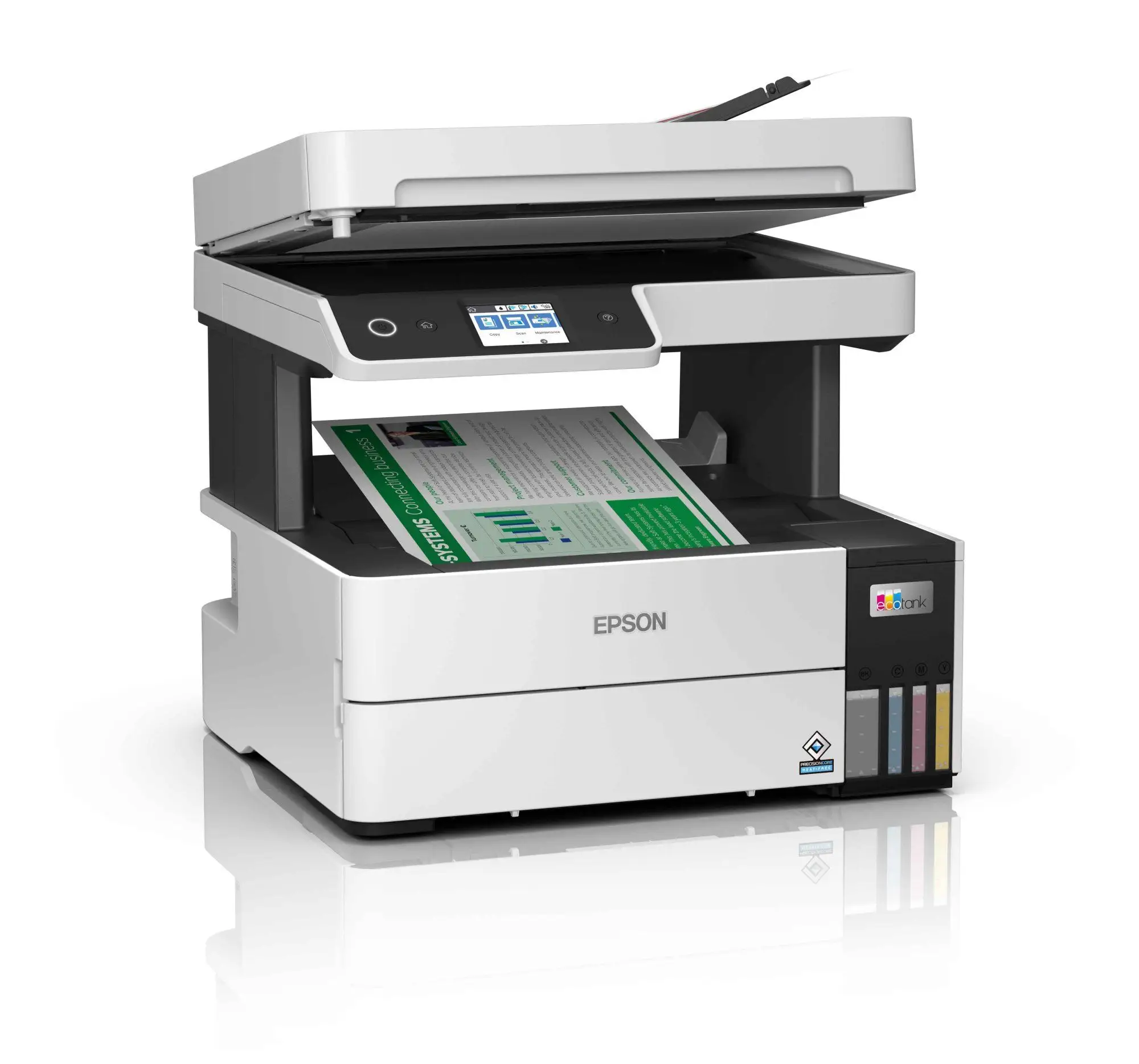 TISKANJE BREZ KARTUŠ! Naprava Epson L6460 ima bogat nabor funkcij, zasnovana je za domače pisarne in majhna podjetja ter zagotavlja izjemno nizke stroške tiskanja na stran ter izjemno hitro tiskanje. Pladenj za papir za vstavljanje s sprednje strani s kapaciteto 250 listov, 6,1-centimetrski zaslon LCD na dotik in samodejni podajalnik dokumentov za 35 strani vam omogočajo tiskanje brez prekinitev.