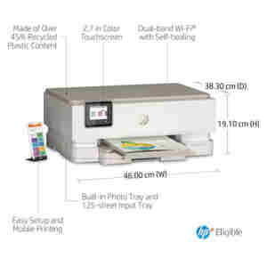Z zanesljivo večfunkcijsko foto brizgalno napravo HP Envy Inspire 7220e, preprosto ustvarjajte, urejajte in tiskajte vsakodnevne fotografije in dokumente. Naprava omogoča tiskanje, kopiranje in skeniranje. Prihranite čas in papir pri tiskanju vsakodnevnih in poslovnih dokumentov s samodejnim obojestranskim tiskanjem. Priročno tiskajte fotografije v različnih velikostih, z vgrajenim pladnjem za fotografije.