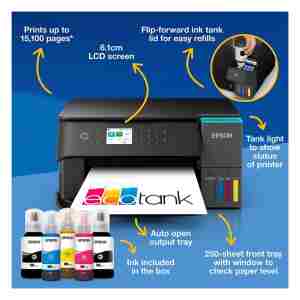 Epson EcoTank L6360 je zmogljiv večnamenski brizgalni tiskalnik, zasnovan za podjetja in domače pisarne, kjer so pomembni nizki stroški tiskanja, zanesljivo delovanje ter visoka produktivnost. Sistem rezervoarjev za črnilo omogoča enostavno dolivanje in bistveno nižje stroške na stran, kar je idealno za okolja z večjim obsegom tiskanja. Naprava združuje tiskanje, skeniranje in kopiranje v eni kompaktni rešitvi, kar prispeva k boljši organizaciji delovnega prostora.