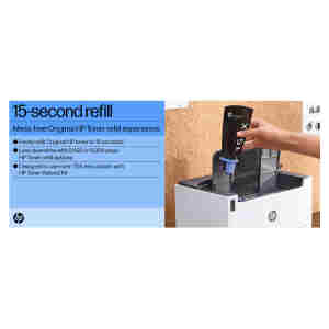 S HP-jevo najnovejšo revolucionarno tehnologijo zmanjšajte prekinitve dela. HP LaserJet Tank, ni samo laserski tiskalnik, pač pa tudi naložba. Prihranki so na voljo takoj na začetku, stroški pa so nižji do 60 % pri vsakem polnjenju, zato lahko prihranite pri vsakem natisu. Visoko zmogljivi brezžični tiskalnik s priloženim tonerjem, ki omogoča natis do 5.000 strani.