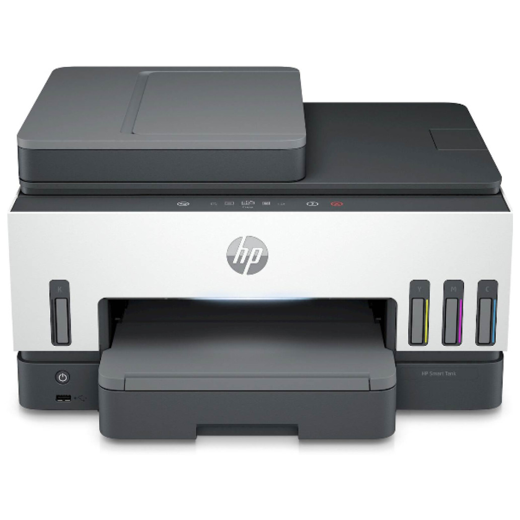 Tiskalnik HP Smart Tank omogoča tiskanje brezrobih brošur, pisarniških dokumentov, na bledenje odpornih fotografij in drugih dokumentov, vse s temnim in ostrim besedilom ter živahnimi barvami. Oblikovan je za natis velikega števila strani brez kartuše in z izjemno nizkimi stroški. V kompletu so priložene stekleničke do 18.000 črno-belih strani in do 8.000 barvnih strani. Tiskanje, skeniranje, kopiranje, faksiranje, avtomatsko obojestransko tiskanje, 250-listni predal, dvopasovno Wi-Fi omrežje, mrežna povezava, samodejno tipalo za črnilo, 76,2 mm čb zaslon na dotik ter 35-listni ADF.