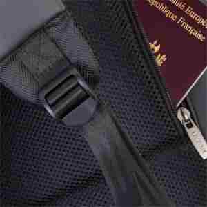 • Poleg razdelka za prenosnik ima nahrbtnik poseben žep za dokumente in tablico velikosti do 10,1″.