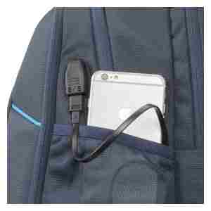 - Priključite svojo prenosno, polnljivo baterijo v vhod USB na stranskem delu nahrbtnika, da napolnite svoje naprave na potovanju.